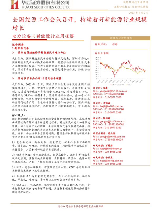 【华西证券】【20230102】电力设备与新能源行业周观察:全国能源工作会议召开,持续看好新能源行业规模增长-22页 行业研究