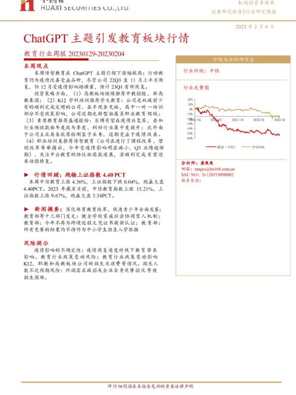 【华西证券】【20230204】教育行业周报:ChatGPT主题引发教育板块行情-14页 行业研究