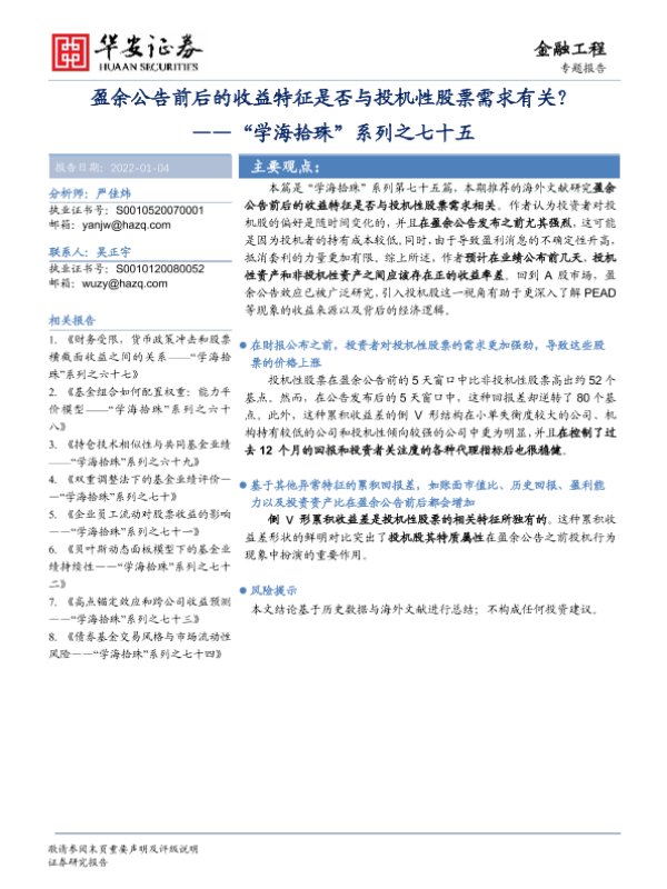 【华安证券】【20220104】盈余公告前后的收益特征是否与投机性股票需求有关?-23页 行业研究