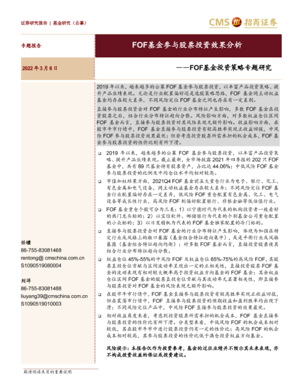 【海通证券】【20220306】FOF基金投资策略专题研究:FOF基金参与股票投资效果分析-30页 行业研究