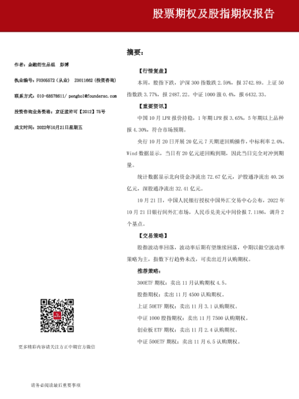 【方正中期期货】【20221021】股票期权及股指期权报告-15页 行业研究