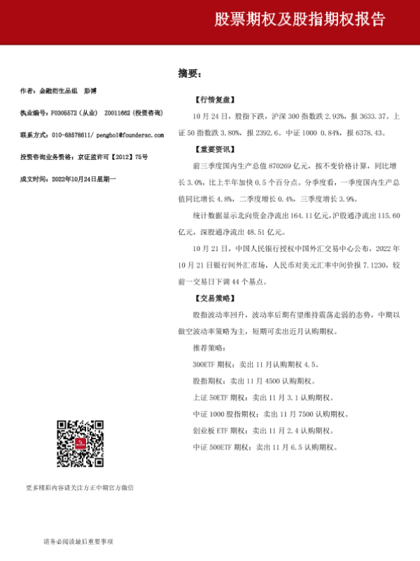【方正中期期货】【20221024】股票期权及股指期权报告-15页 行业研究