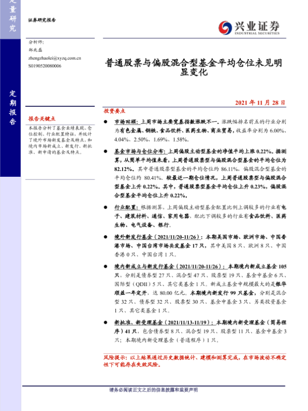 【兴业证券】【20211128】普通股票与偏股混合型基金平均仓位未见明显变化-16页 行业研究