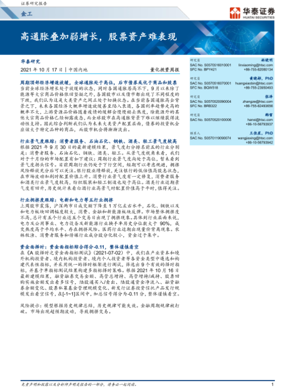 【华泰证券】【20211017】高通胀叠加弱增长,股票资产难表现-20页 行业研究