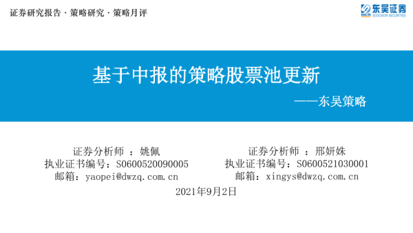 【东吴证券】【20210902】东吴策略·策略月评:基于中报的策略股票池更新-32页 行业研究