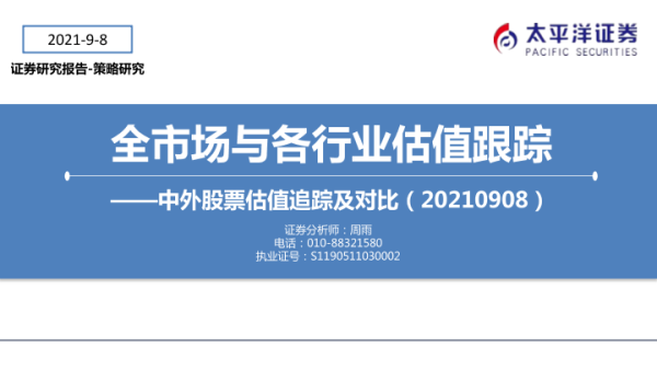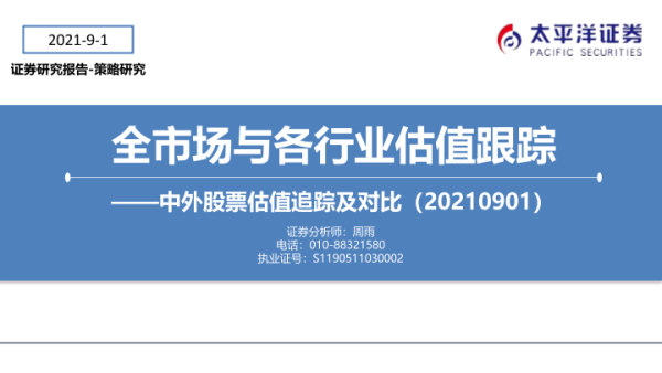 【太平洋证券】【20210915】全市场与各行业估值跟踪:中外股票估值追踪及对比-27页 行业研究