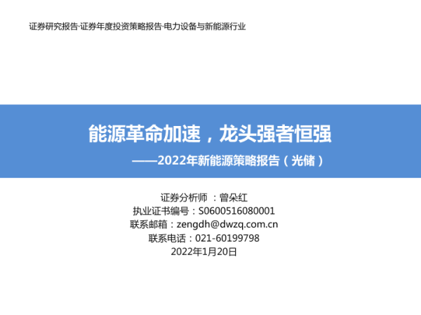 【东吴证券】【20220120】电力设备与新能源行业2022年新能源策略报告(光储):能源革命加速,龙头强者恒强-87页 行业研究