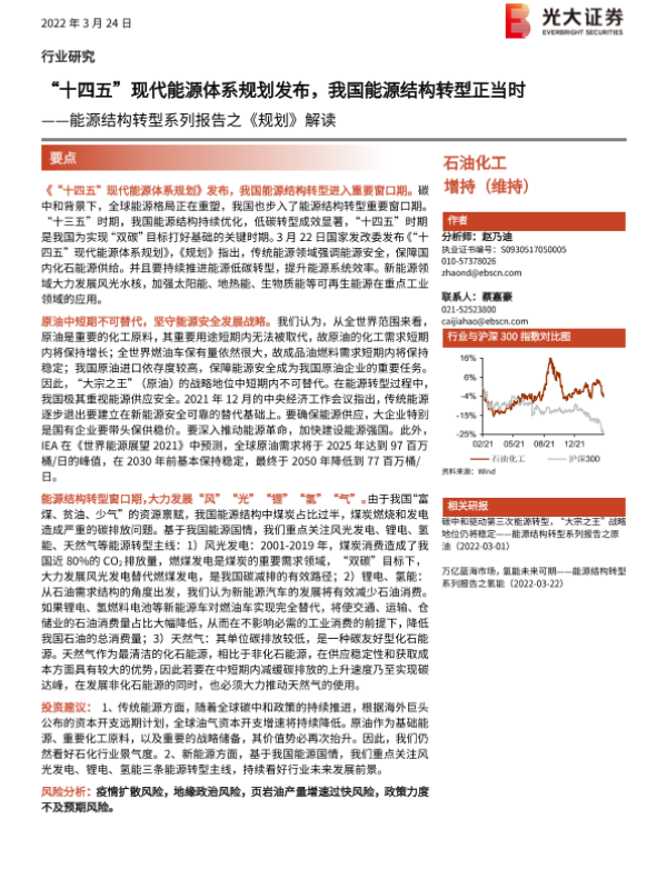 【光大证券】【20220324】石油化工行业能源结构转型系列报告之《规划》解读:“十四五”现代能源体系规划发布,我国能源结构转型正当时-15页 行业研究