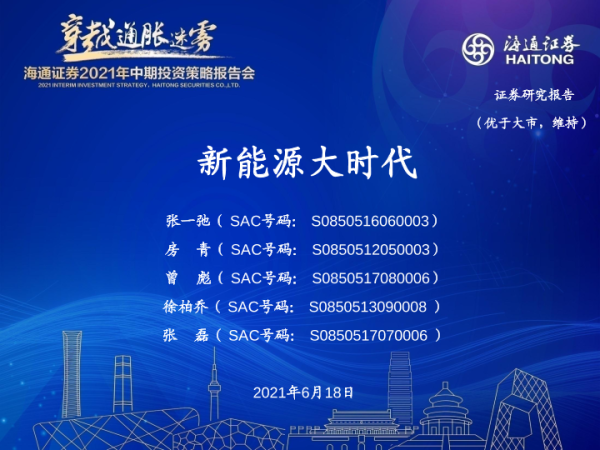 【海通证券】【20210618】新能源行业:新能源大时代-16页 行业研究