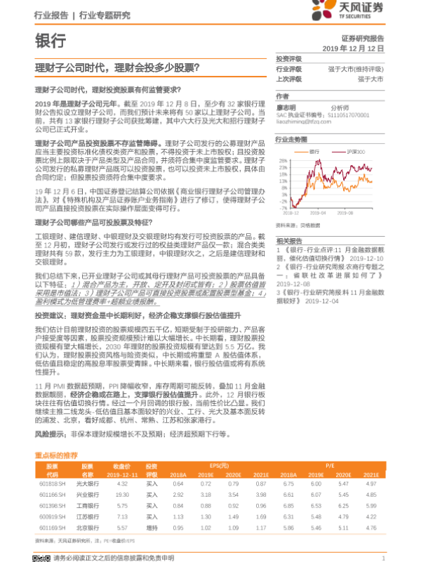 【天风证券】【20191212】理财子公司时代,理财会投多少股票?-20页 行业研究