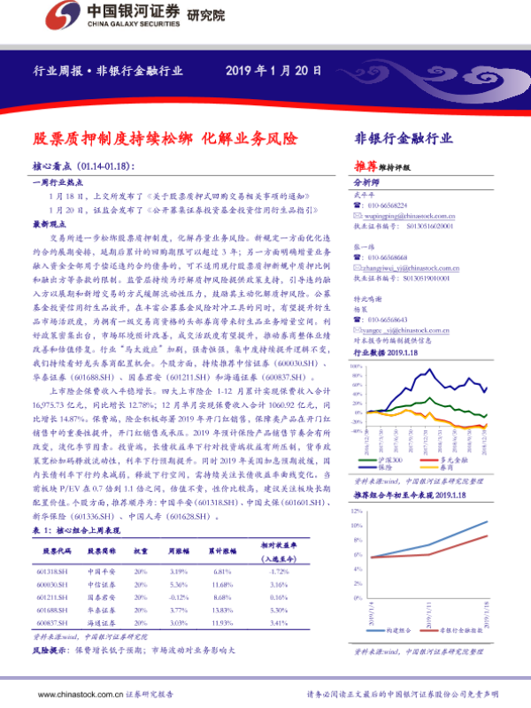 【银河证券】【20190120】非银行金融行业周报:股票质押制度持续松绑 化解业务风险-15页 行业研究
