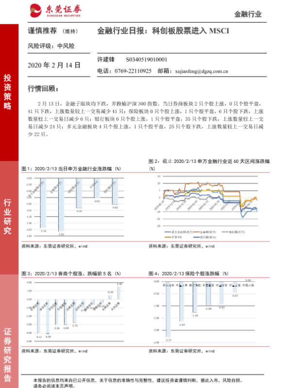 【东莞证券】【20200214】金融行业日报:科创板股票进入MSCI-4页 行业研究