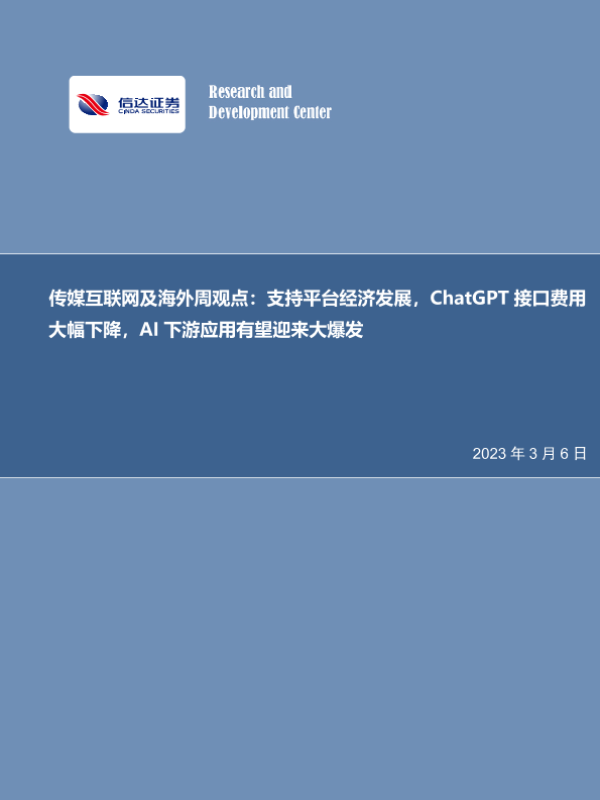 【信达证券】【20230306】支持平台经济发展,ChatGPT接口费用大幅下降,AI下游应用有望迎来大爆发-25页 行业研究