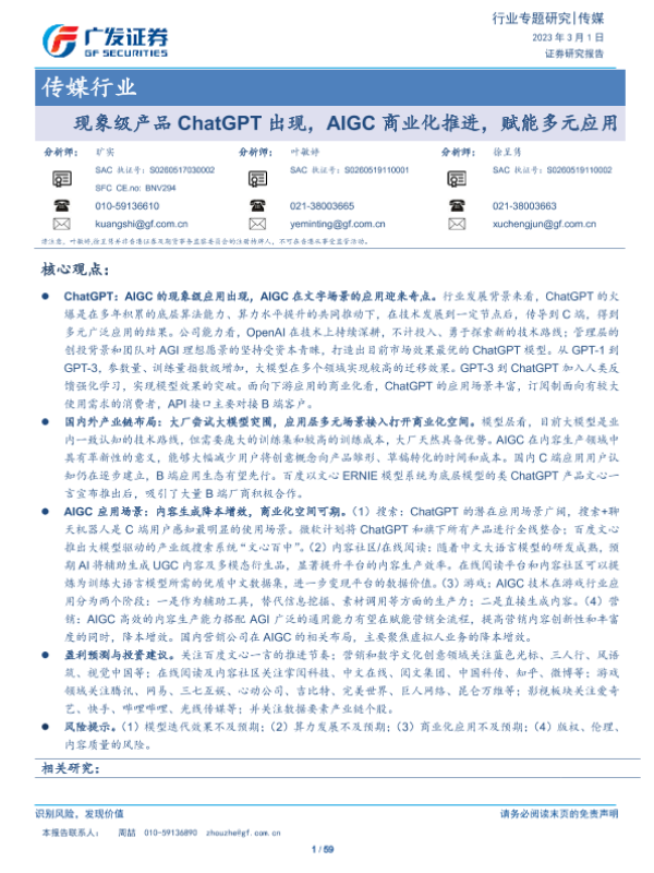 【广发证券】【20230301】现象级产品ChatGPT出现,AIGC商业化推进,赋能多元应用-59页 行业研究