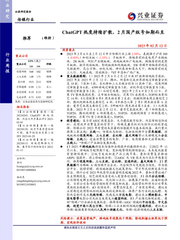 【兴业证券】【20230212】ChatGPT热度持续扩散,2月国产版号如期而至-21页 行业研究