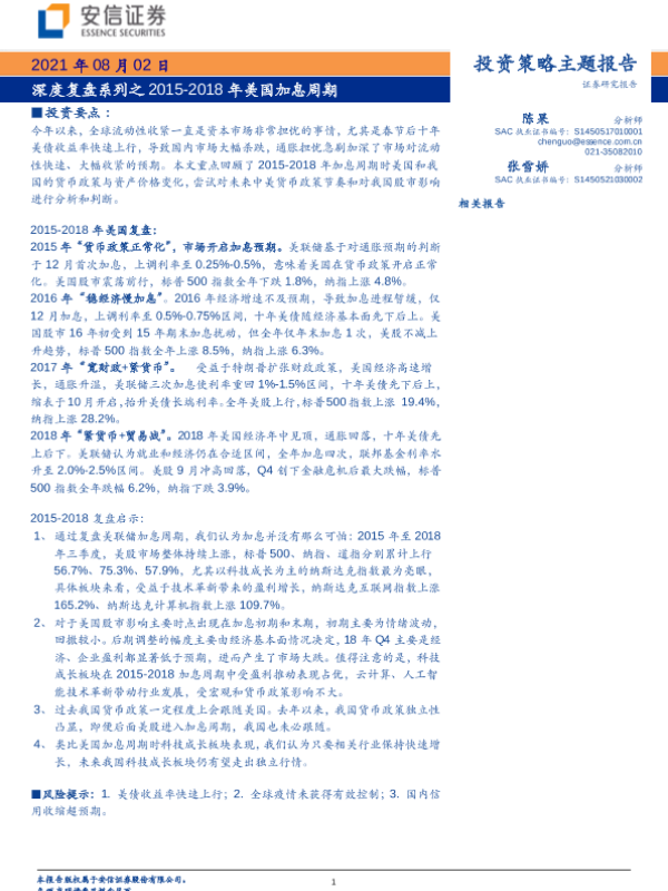 【安信证券】【20210802】深度复盘系列之2015-2018年美国加息周期-23页 行业研究