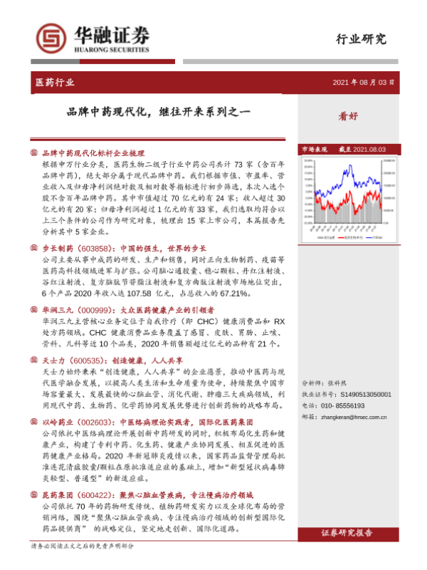 【华融证券】【20210803】医药行业:品牌中药现代化,继往开来系列之一-20页 行业研究