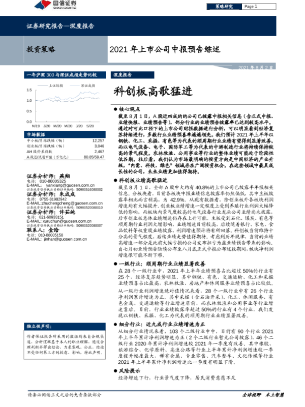 【国信证券】【20210802】2021年上市公司中报预告综述:科创板高歌猛进-21页 行业研究
