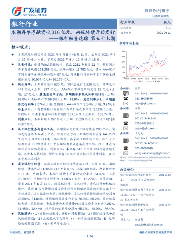 【广发证券】【20210611】银行业融资追踪(第五十七期):本期存单净融资减少2316亿元南银转债开始发行-30页 行业研究