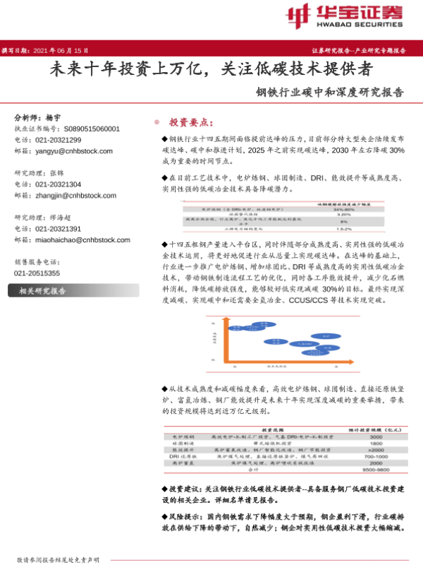 【华宝证券】【20210615】钢铁行业碳中和深度研究报告:未来十年投资上万亿,关注低碳技术提供者-31页 行业研究