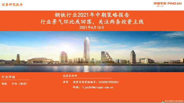 【平安证券】【20210616】钢铁行业2021年中期策略报告:行业景气环比或回落,关注两条投资主线-26页 行业研究