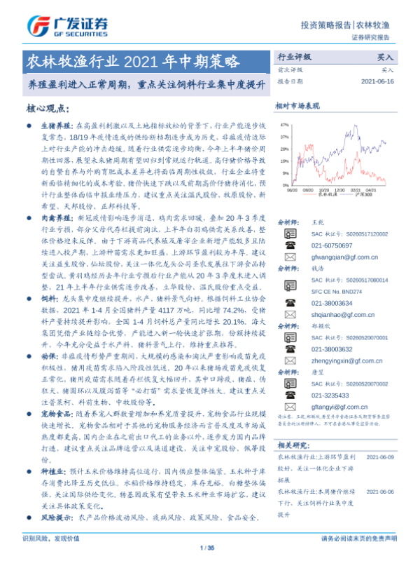 【广发证券】【20210616】农林牧渔行业2021年中期策略:养殖盈利进入正常周期,重点关注饲料行业集中度提升-35页 行业研究