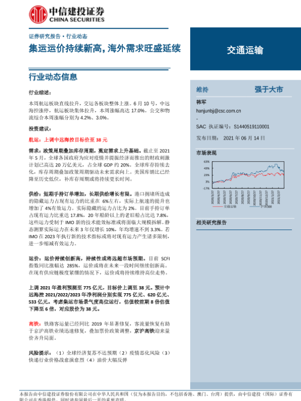 【中信建投证券】【20210614】交通运输行业:集运运价持续新高,海外需求旺盛延续-38页 行业研究