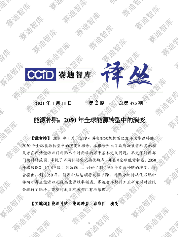 【国际可再生能源机构】【202004】能源补贴:2050年全球能源转型中的演变-20页 行业研究