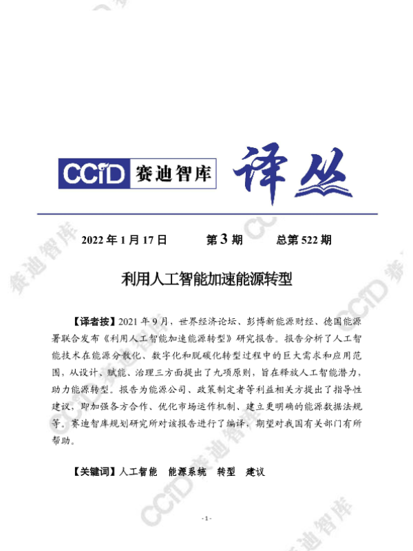 【世界经济论坛&彭博新能源财经&德国能源署】【202109】利用人工智能加速能源转型-20页 白皮书