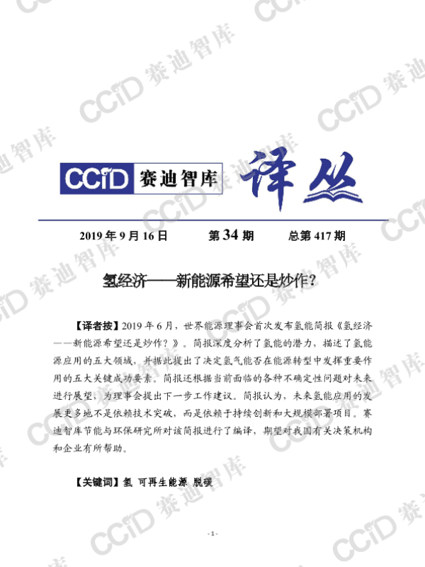 【世界能源理事会】【201906】氢经济——新能源希望还是炒作?-19页 行业研究