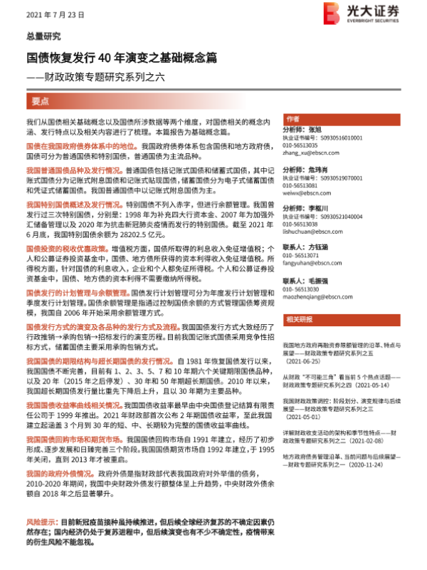 【光大证券】【20210723】国债恢复发行40年演变之基础概念篇——财政政策专题研究系列之六-23页 行业研究