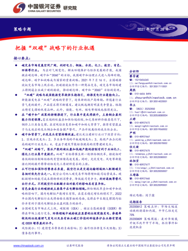 【银河证券】【20210728】策略专题:把握“双碳”战略下的行业机遇-49页 行业研究