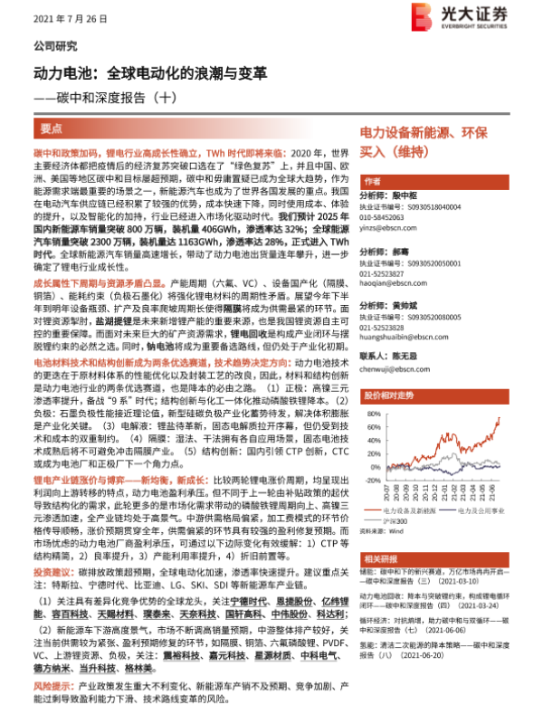【光大证券】【20210726】碳中和深度报告(十):动力电池:全球电动化的浪潮与变革-77页 行业研究
