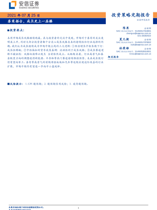 【安信证券】【20210725】投资策略定期报告:券商搭台,成长更上一层楼-26页 行业研究
