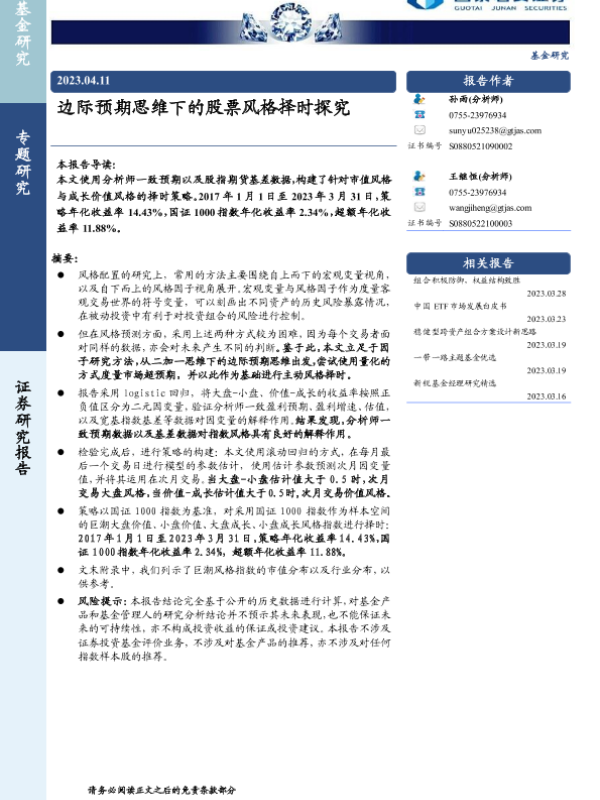 【国泰君安证券】【20230411】边际预期思维下的股票风格择时探究-17页 行业研究