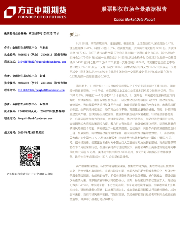 【方正中期期货】【20230628】股票期权市场全景数据报告-44页 行业研究