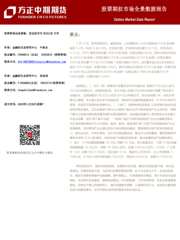 【方正中期期货】【20231120】股票期权市场全景数据报告-44页 行业研究