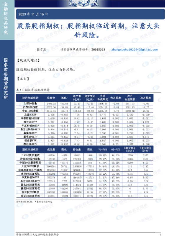 【国泰君安期货】【20231116】股票股指期权:股指期权临近到期,注意大头针风险。-15页 行业研究