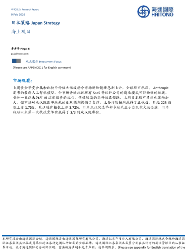 【海通国际】【202602】日本策略 日本股票市场周报 海上观日-13页 证券期货研究报告