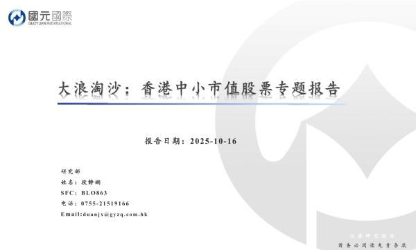 【国元国际】【202510】大浪淘沙:香港中小市值股票专题报告-69页 证券期货研究报告