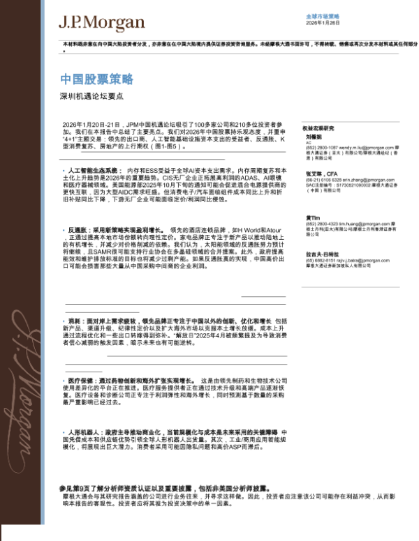 【J.P. Morgan】【202601】中国股票策略_深圳机遇论坛要点总结-14页 宏观策略