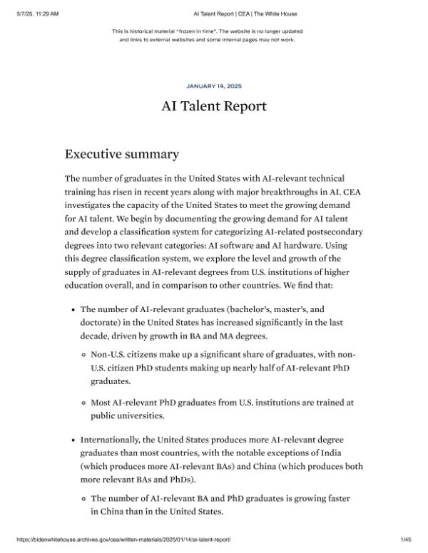 【拜登政府】【20250114】AI Talent Report-45页 政策文件