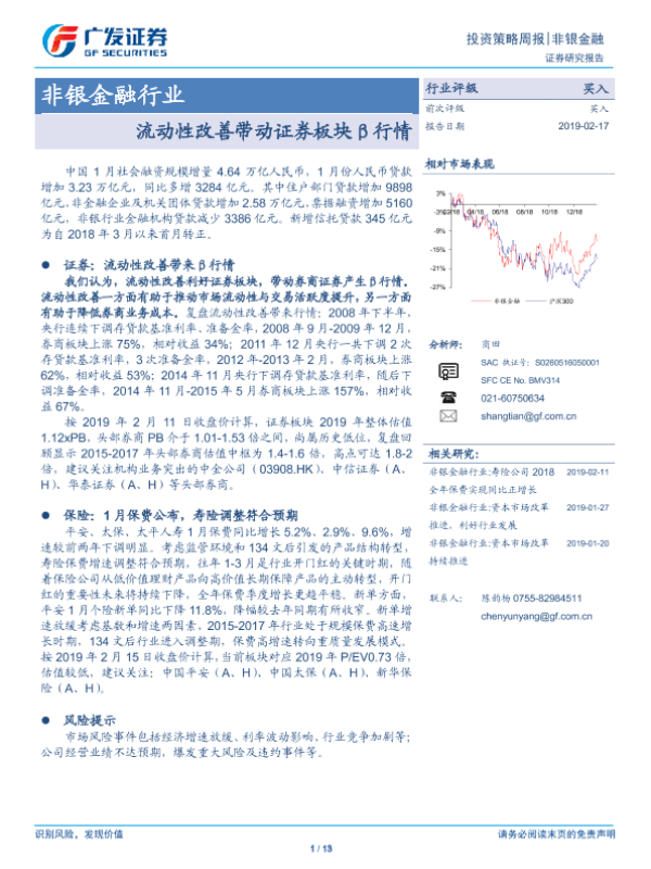 【广发证券】【20190217】非银金融行业:流动性改善带动证券板块β行情-13页 行业研究
