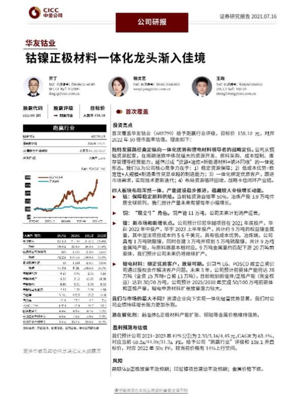 【中金公司】【20210716】华友钴业-603799.SH-钴镍正极材料一体化龙头渐入佳境-32页 行业研究