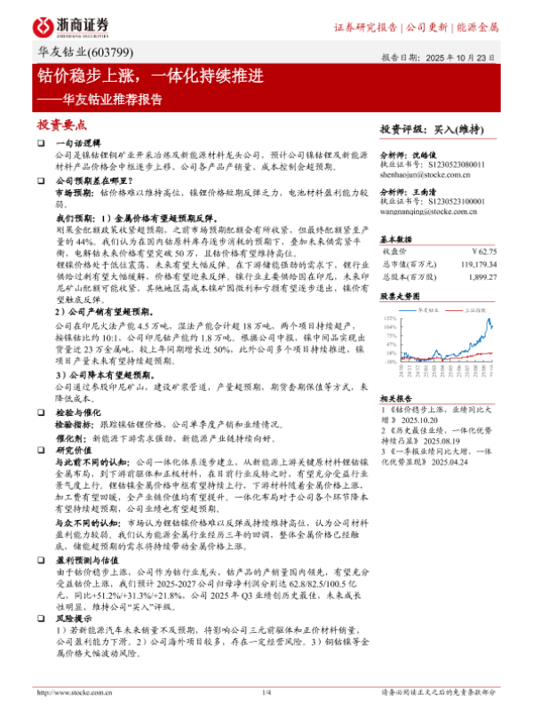 【浙商证券】【202510】钴价稳步上涨,一体化持续推进——华友钴业推荐报告-4页 证券期货研究报告