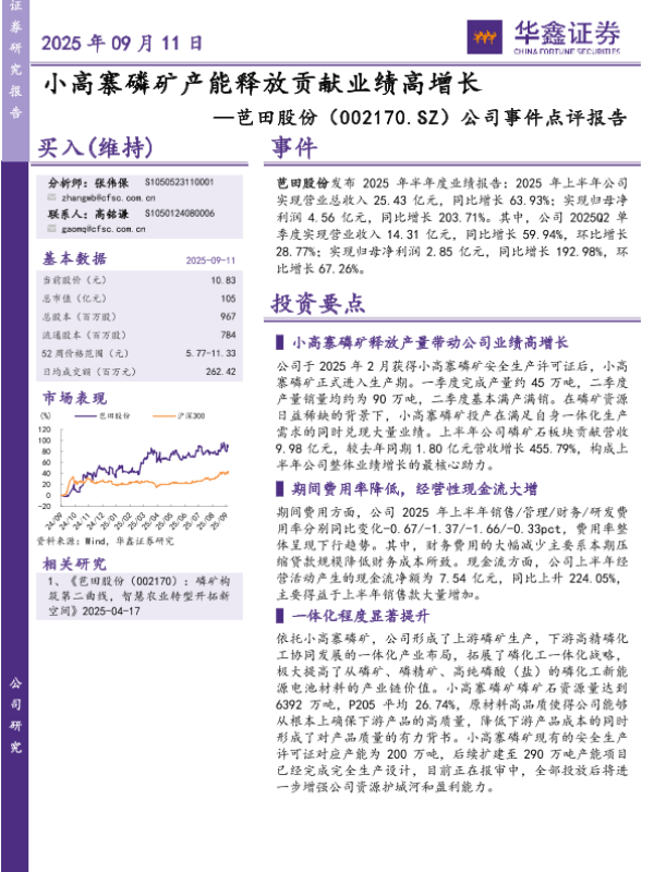 【华鑫证券】【202509】小高寨磷矿产能释放贡献业绩高增长-5页 公司研究