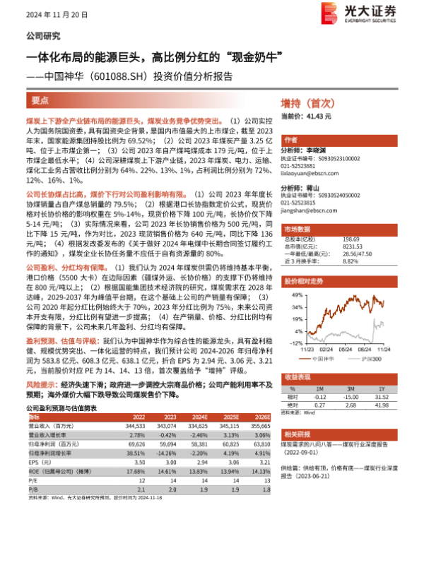 【光大证券】【20241120】中国神华(601088)投资价值分析报告:一体化布局的能源巨头,高比例分红的“现金奶牛”-28页 行业研究