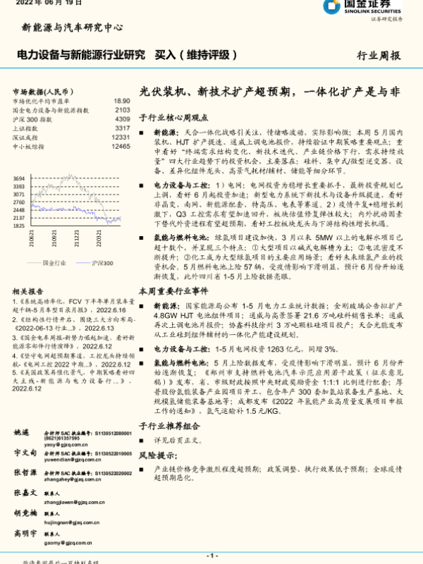 【国金证券】【20220619】电力设备与新能源行业研究周报:光伏装机、新技术扩产超预期,一体化扩产是与非-14页 行业研究