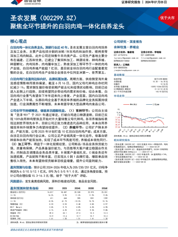 【国信证券】【20240705】圣农发展(002299)聚焦全环节提升的白羽肉鸡一体化自养龙头-42页 行业研究