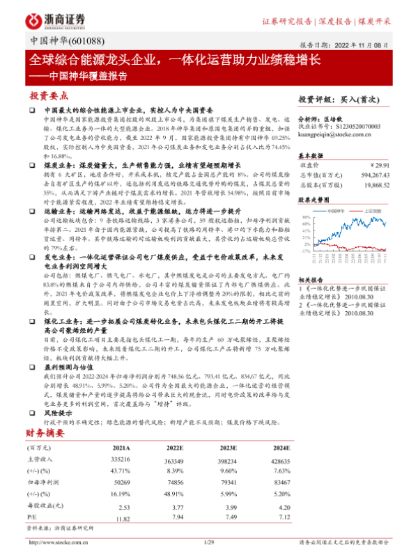 【浙商证券】【20221108】中国神华:全球综合能源龙头企业,一体化运营助力业绩稳增长-29页 行业研究
